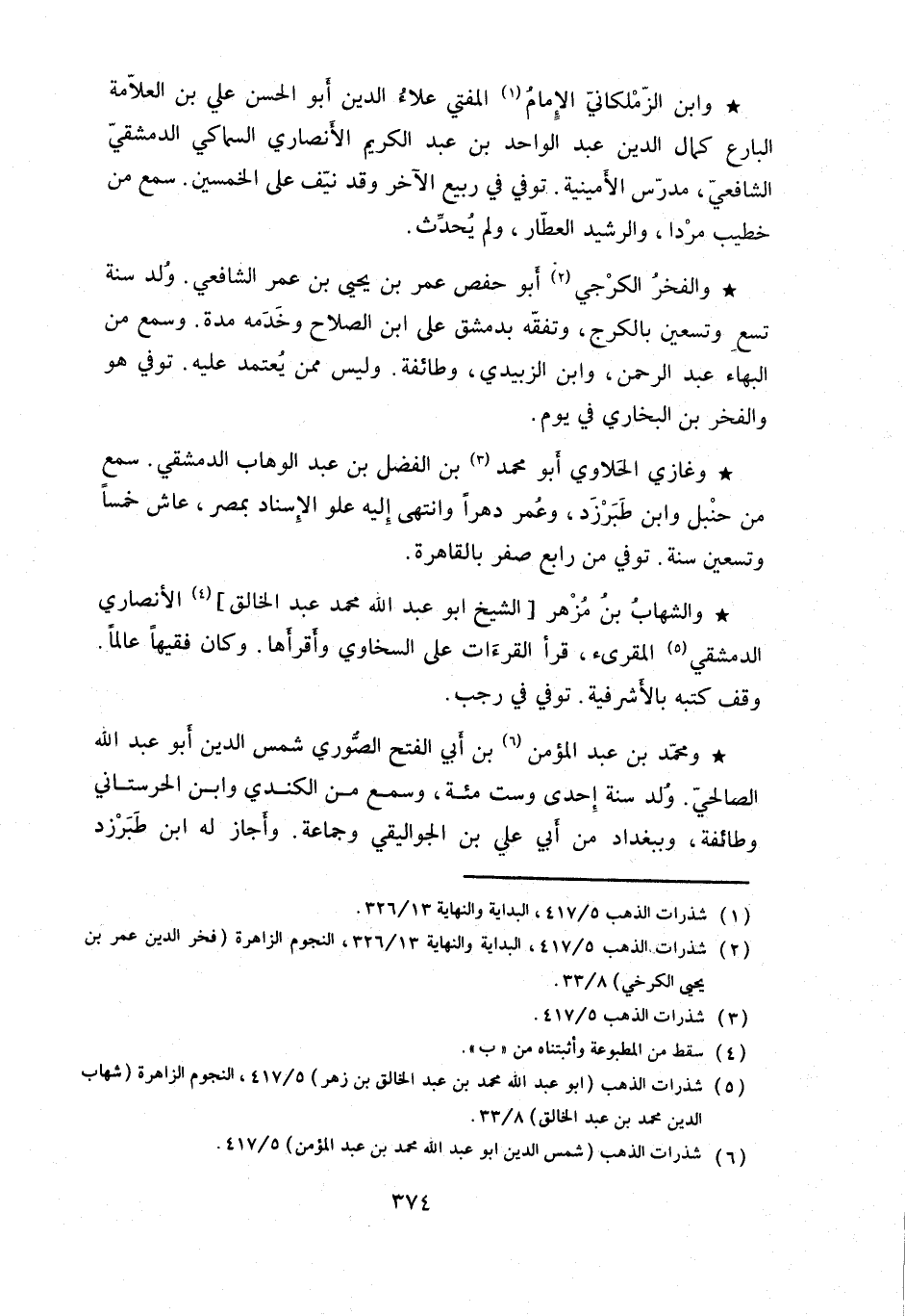 وابن الزملكاني الإمام المفتي علاء الدين أبو الحسن علي بن العلامة البارع كمال الدين عبد الواحد بن عبد الكريم الأنصاري السماكي الدمشقي الشافعي مدرس الأمينية.