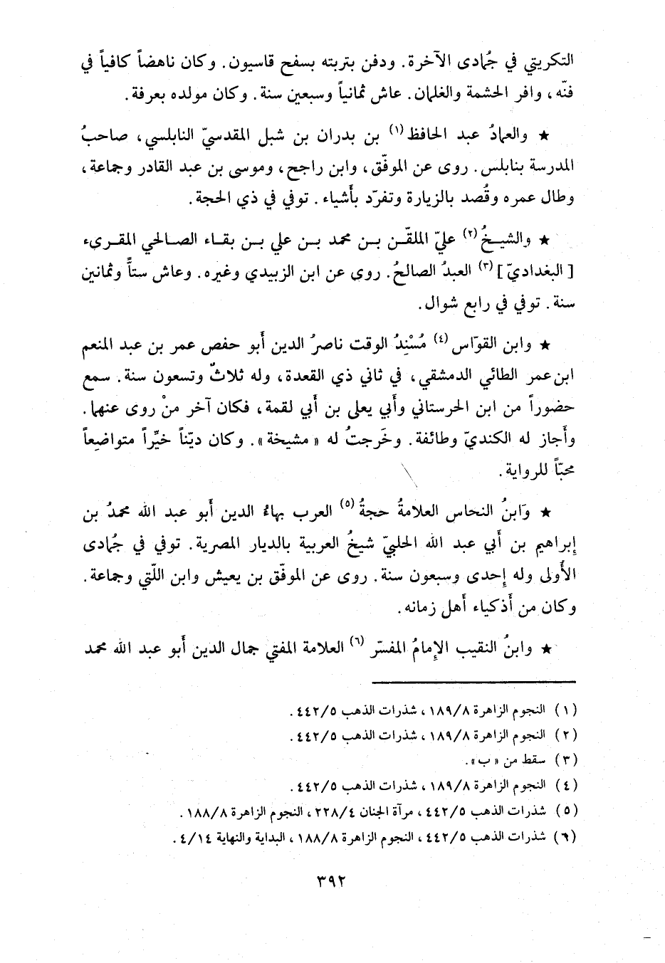 وابن النقيب الإمام المفسر العلامة المفتي جمال الدين أبو عبد الله محمد