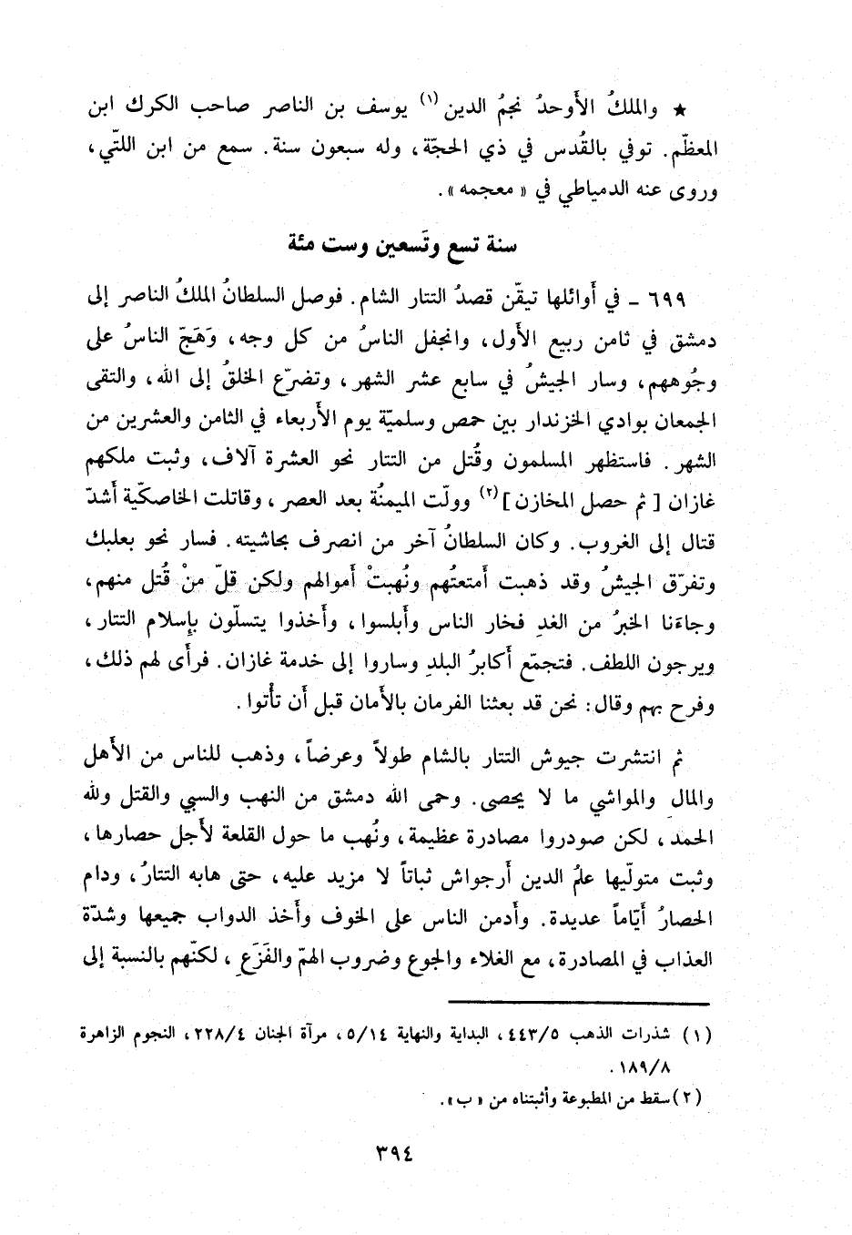 وحمى الله دمشق من النهب والسبي والقتل ولله الحمد لكن صودروا مصادرة عظيمة ونهب ما حول القلعة لأجل حصارها وثبت متوليها علم الدين أراجوش ثباتًا لا مزيد عليه ثم هابه التتار ودام الحصار أيامًا عديدة.