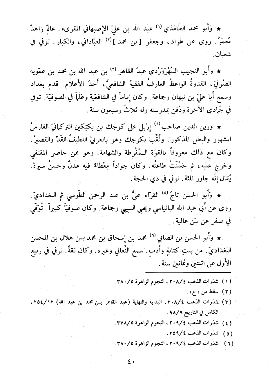 وأبوالنجيب السهروردي عبد القاهر بن عبد الله بن محمد بن عمويه الصوفي القدوة الواعظ العارف الفقيه الشافعي أحد الأعلام.