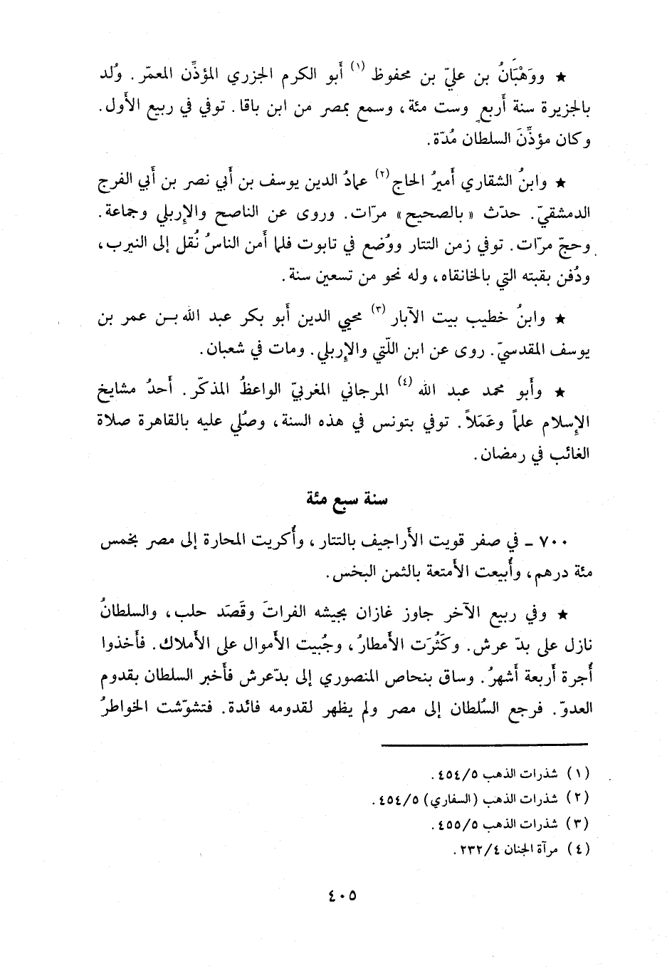 في صفر قويت الأراجيف بالتتار وأكريت المحارة إلى مصر بخمس مائة درهم وأبيعت الأمتعة بالثمن البخس.