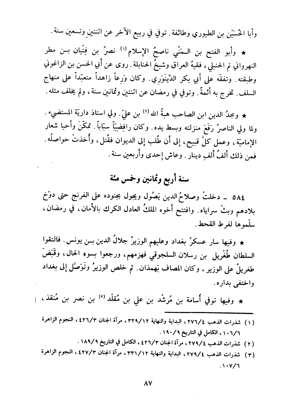 فالتقوا السلطان طغريل بن رسلان السلجوقي فهزمهم ورجعوا بسوء الحال وقبض طغريل على الوزير وكان المصاف وفيها توفي أسامة بن مرشد بن علي بن مقلد بن نصر بن منقذ