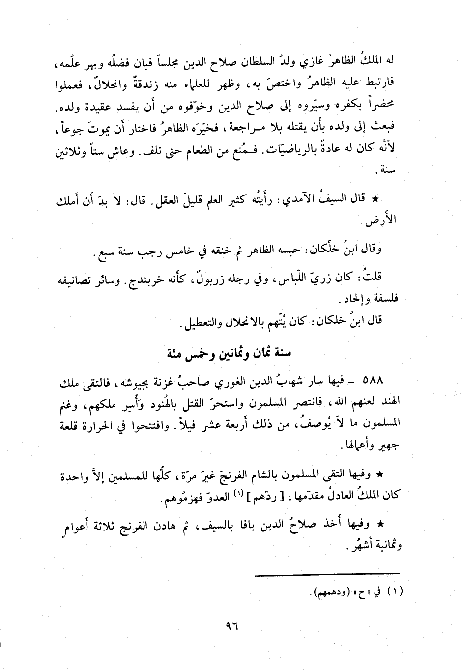 وفيها أخذ صلاح الدين يافا بالسيف ثم هادن الفرنج ثلاثة أعوام وثمانية أشهر.