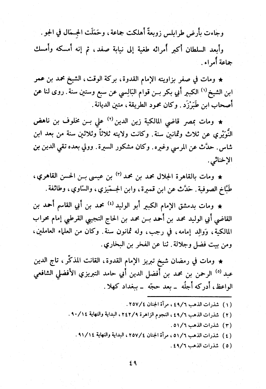 ومات في رمضان شيخ تبريز الإمام القدوة، القانت المذكر، تاج الدين عبد الرحمن بن محمد بن أفضل الدين أبي حامد التبريزي الأفضلي الشافعي الواعظ، أدركه أجله - بعد حجه - ببغداد كهلاً.