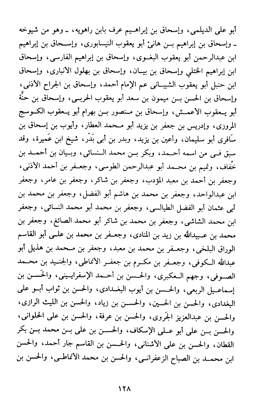 أبو علي الديلمي، وإسحاق بن إبراهيم عرف بابن راهويه، - وهو من شيوخه - وإسحاق بن إبراهيم بن هانئ أبو يعقوب النيسابوري، وإسحاق بن إبراهيم بن عبد الرحمن أبو يعقوب البغوي، وإسحاق بن إبراهيم الفارسي، وإسحاق بن إبراهيم الختلي وإسحاق بن بيان، وإسحاق بن بهلول الأنباري، وإسحاق بن حنبل أبو يعقوب الشيباني عم الإمام أحمد، وإسحاق بن الجراح الأذني، وإسحاق بن الحسن بن ميمون بن سعد أبو يعقوب الحربي، وإسحاق بن حنة أبو يعقوب الأعمش، وإسحاق بن منصور بن بهرام أبو يعقوب الكوسج المروزي، وإدريس بن جعفر بن يزيد أبو محمد العطار، وأيوب بن إسحاق بن سافري أبو سليمان، وأعين بن يزيد، وبدر بن أبي بدر، شيخ ابن عميرة، وقد سبق في من اسمه أحمد، وبكر بن محمد النسائي، وبيان بن أحمد بن خفاف، وتميم بن محمد أبو عبد الرحمن الطوسي، وجعفر بن أحمد الأذني، وجعفر بن أحمد بن معبد المؤدب، وجعفر بن شاكر، وجعفر بن عامر، وجعفر بن عبد الواحد، وجعفر بن محمد بن هاشم أبو الفضل، وجعفر بن محمد بن أبي عثمان أبو الفضل الطيالسي، وجعفر بن محمد أبو محمد النسائي، وجعفر بن محمد الشاشي، وجعفر بن محمد بن شاكر أبو محمد الصائغ، وجعفر بن محمد بن عبيد الله بن زيد بن المنادى، وجعفر بن محمد بن علي أبو القاسم الوراق البلخي، وجعفر بن محمد بن معبد، وجعفر بن محمد بن هذيل أبو عبد الله الكوفي، وجعفر بن مكرم بن جعفر الأنماطي، والجنيد بن محمد الصوفي، وجهم العكبري، والحسن بن أحمد الإسفراييني، والحسن بن إسماعيل الربعي، والحسن بن أيوب البغدادي، والحسن بن ثواب أبو علي البغدادي، والحسن بن الحسين، والحسن بن زياد، والحسن بن الليث الرازي، والحسن بن عبد العزيز الجروي، والحسن بن عرفة، والحسن بن علي الحلواني، والحسن بن علي أبو علي الإسكاف، والحسن بن علي بن محمد بن بكر القطان، والحسن بن علي الأشناني، والحسن بن القاسم جار أحمد، والحسن بن محمد بن الصباح الزعفراني، والحسن بن محمد الأنماطي، والحسن ابن
