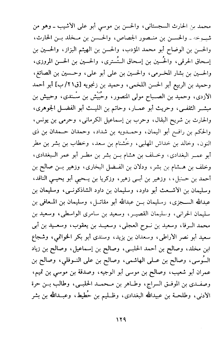 محمد بن الحارث السجستاني، والحسن بن موسى أبو علي الأشيب - وهو من شيوخه - والحسن بن منصور الجصاص، والحسن بن مخلد بن الحارث، والحسن بن الوضاح أبو محمد المؤدب، والحسن بن الهيثم البزاز، والحسين بن إسحاق الحرقي، والحسين بن إسحاق التستري، والحسين بن الحسن المروزي، والحسين بن بشار المخرمي، والحسين بن علي أبو علي، وحسين بن الصائغ، وحميد بن الربيع أبو الحسن اللخمي، وحميد بن زنجويه أبو أحمد الأزدي، وحميد بن الصباح مولى المنصور، وحبيش بن سندي، وحبيش بن مبشر الثقفي، وحريث أبو عمار، وحاتم بن الليث أبو الفضل الجوهري، والحارث بن شريح البقال، وحرب بن إسماعيل الكرماني، وحرمي بن يونس، والحكم بن رافع أبو اليمان، وحمدويه بن شداد، وحمدان حمدان ابن ذي النون، وخالد بن خداش المهلبي، وخشنام بن سعد، وخطاب بن بشر بن مطر أبو عمر البغدادي، وخلف بن هشام بن بشر بن مطر أبو عمر البغدادي، وخلف بن هشام بن بشر، ودلان بن الفضل البخاري، وزهير بن صالح بن أحمد بن حنبل، وزهير بن أبي زهير، وزكريا بن يحيى أبو يحيى الناقد، وسليمان بن الأشعث أبو داود، وسليمان بن داود الشاذكوني، وسليمان بن عبد الله السجزي، وسليمان بن عبد الله أبو مقاتل، وسليمان بن المعافى بن سليمان الحراني، وسليمان القصير، وسعيد بن سامري الواسطي، وسعيد بن محمد الرفا، وسعيد بن نوح العجلي، وسعيد بن يعقوب، سعيد بن أبي سعيد أبو نصر الأراطي، وسعدان بن يزيد، وسندي أبو بكر الخواتمي، وشجاع بن مخلد، وصالح بن أحمد الحلبي، وصالح بن إسماعيل، وصالح بن زياد السوسي، وصالح بن علي الهاشمي، وصالح بن علي النوفلي، وصالح بن عمران أبو شعيب، وصالح بن موسى أبو الوجيه، وصدقة بن موسى بن تميم، وصفدي بن الموفق السراج، وطاهر بن محمد الحلبي، وطالب بن حرة الأدنى، وطلحة بن عبيد الله البغدادي، وظليم بن حطيط، وعبد الله بن بشر.