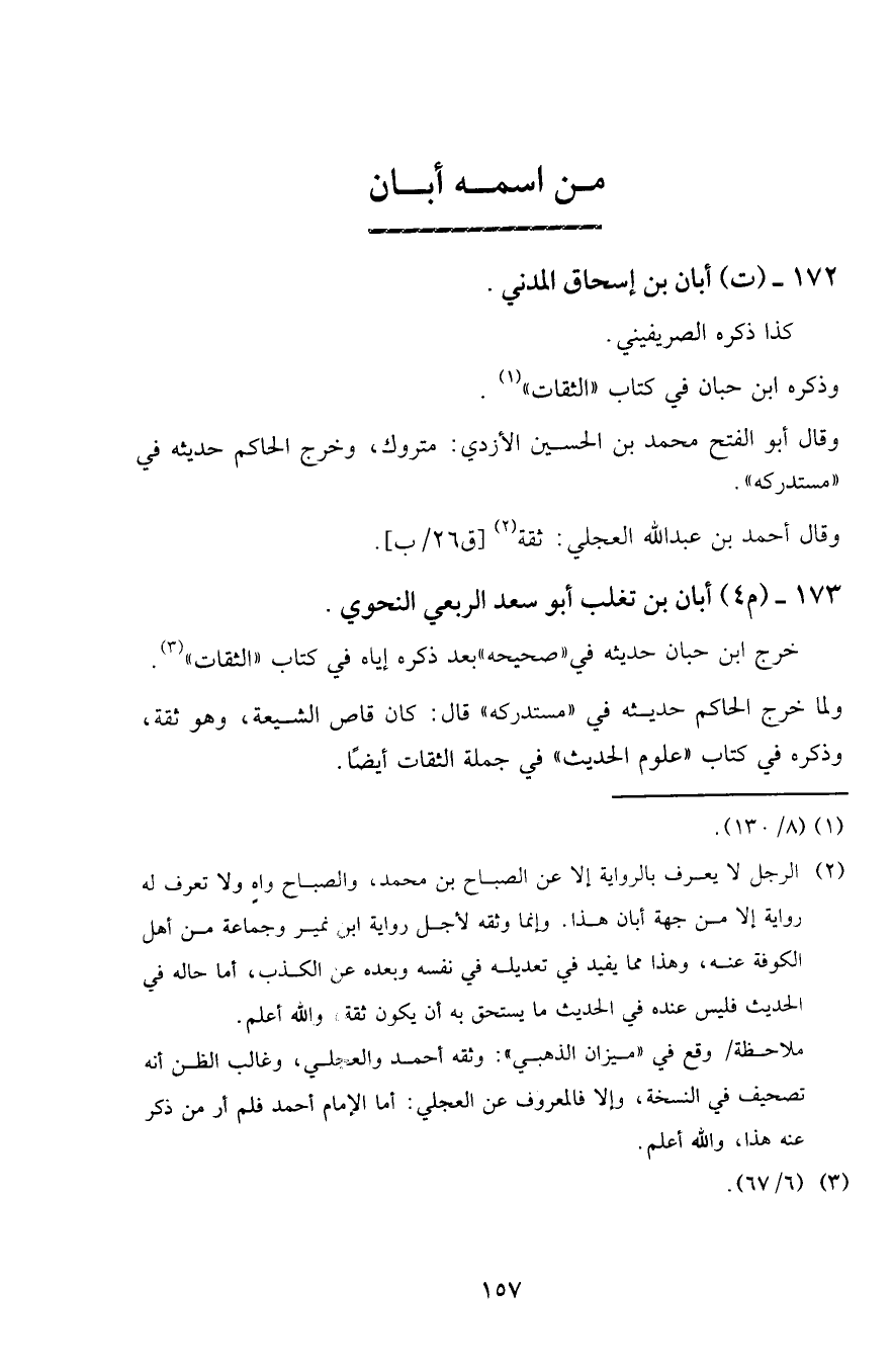 ١٧٣ - (م ٤) أبان بن تغلب أبو سعد الربعي النحوي.