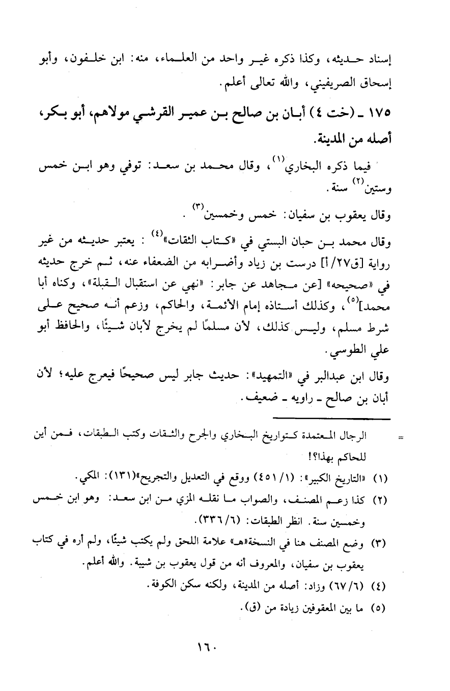 ١٧٥ - " خت ٤ " أبان بن صالح بن عمير القرشي مولاهم، أبو بكر، أصله من المدينة.