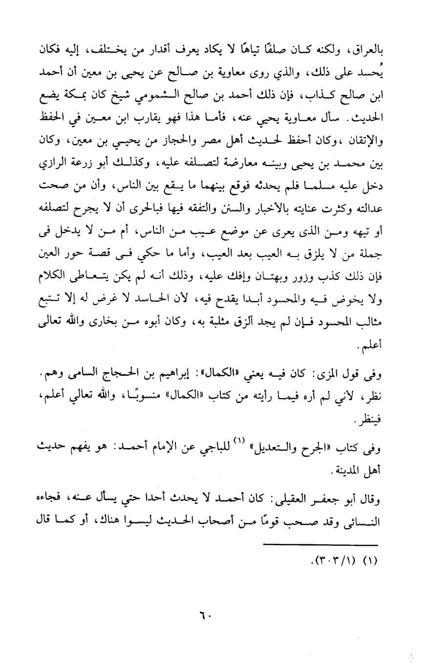 بالعراق، ولكنه كان صلفا تياها لا يكاد يعرف أقدار من يختلف إليه فكان يحسد على ذلك، والذي روى معاوية بن صالح عن يحيى بن معين أن أحمد بن صالح كذاب، فإن ذلك أحمد بن صالح الشمومي شيخ كان بمكة يضع الحديث.
