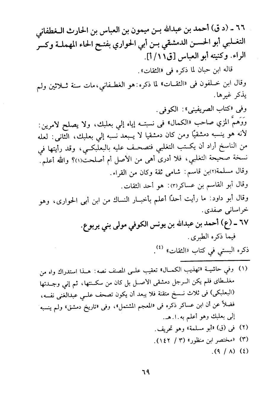 ٦٦ - (د ق) أحمد بن عبد الله بن ميمون بن العباس بن الحارث الغطفاني التغلبي أبو الحسن الدمشقي بن أبي الحواري، بفتح الحاء المهملة وكسر الراء. وكنيته أبو العباس.