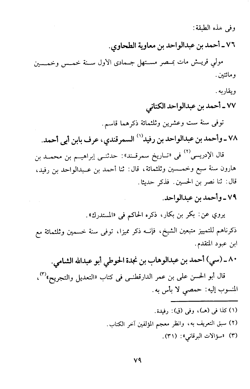 ٧٨ - وأحمد بن عبد الواحد بن رفيد السمرقندي، عرف بابن أبي أحمد.