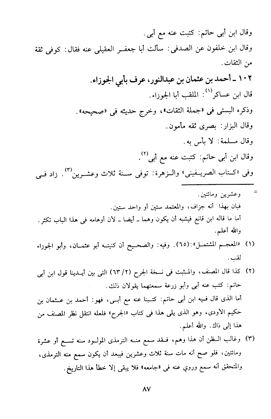١٠٢ - أحمد بن عثمان بن عبد النور، عرف بأبي الجوزاء.