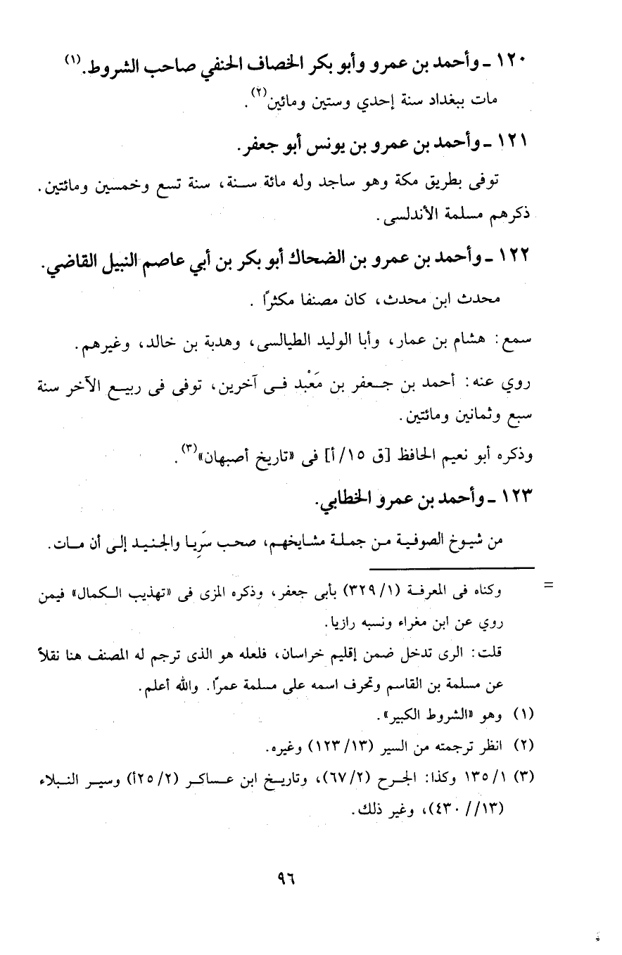 ١٢٠ - وأحمد بن عمرو وأبو بكر الخصاف الحنفي صاحب الشروط.