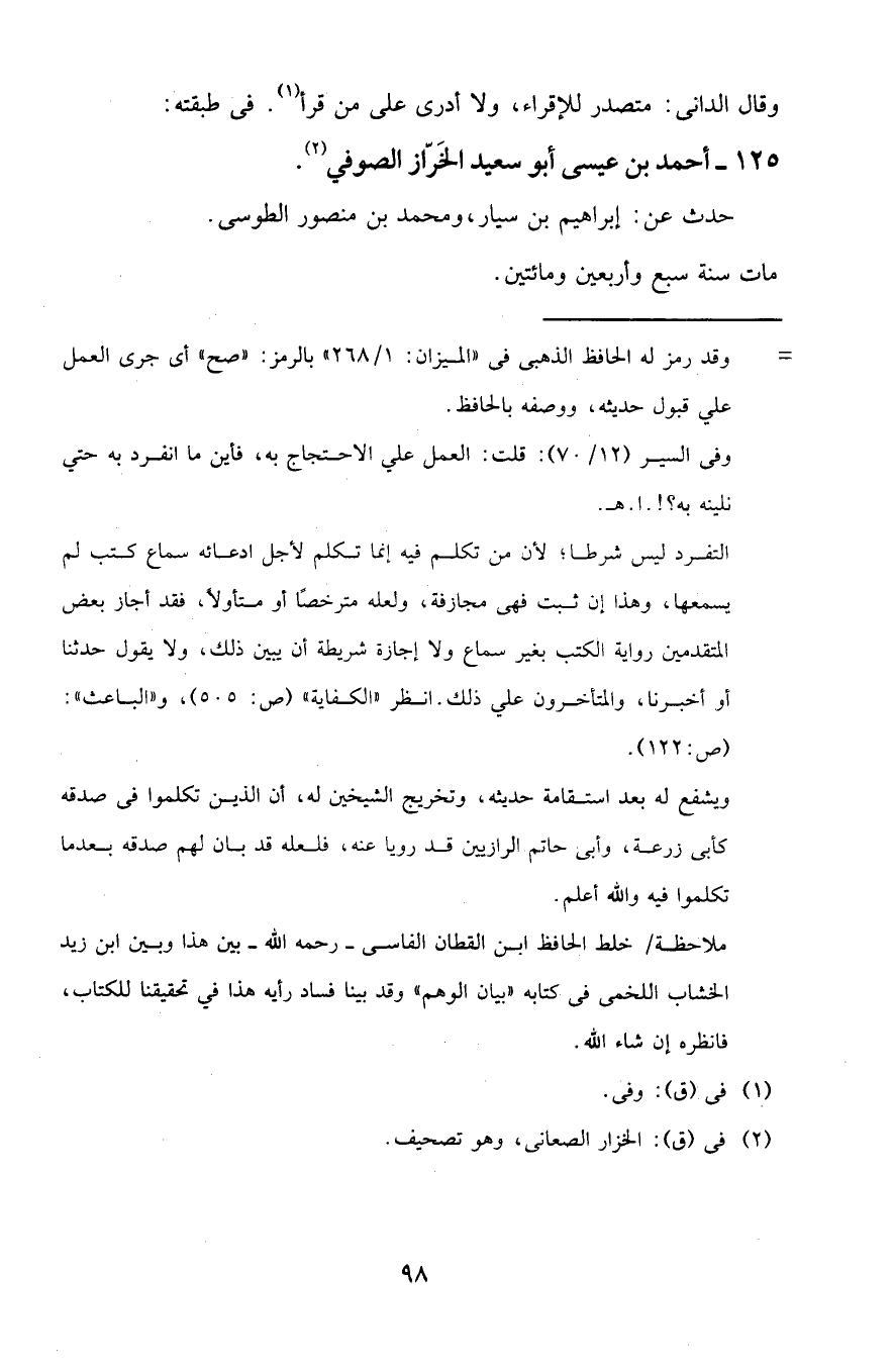 ١٢٥ - أحمد بن عيسى أبو سعيد الخراز الصوفي.