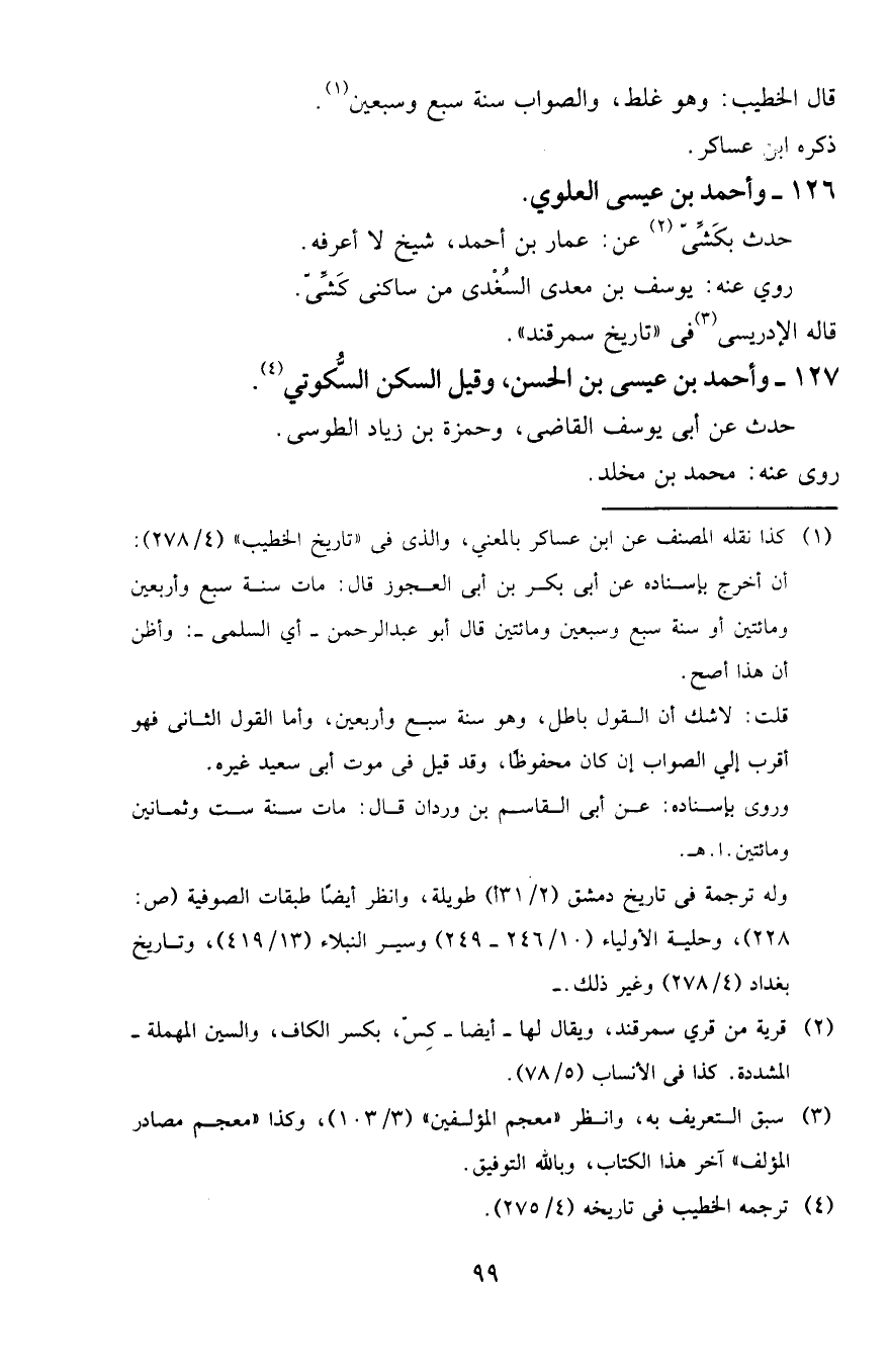 ١٢٧ - وأحمد بن عيسى بن الحسن، وقيل السكن السكوتي.