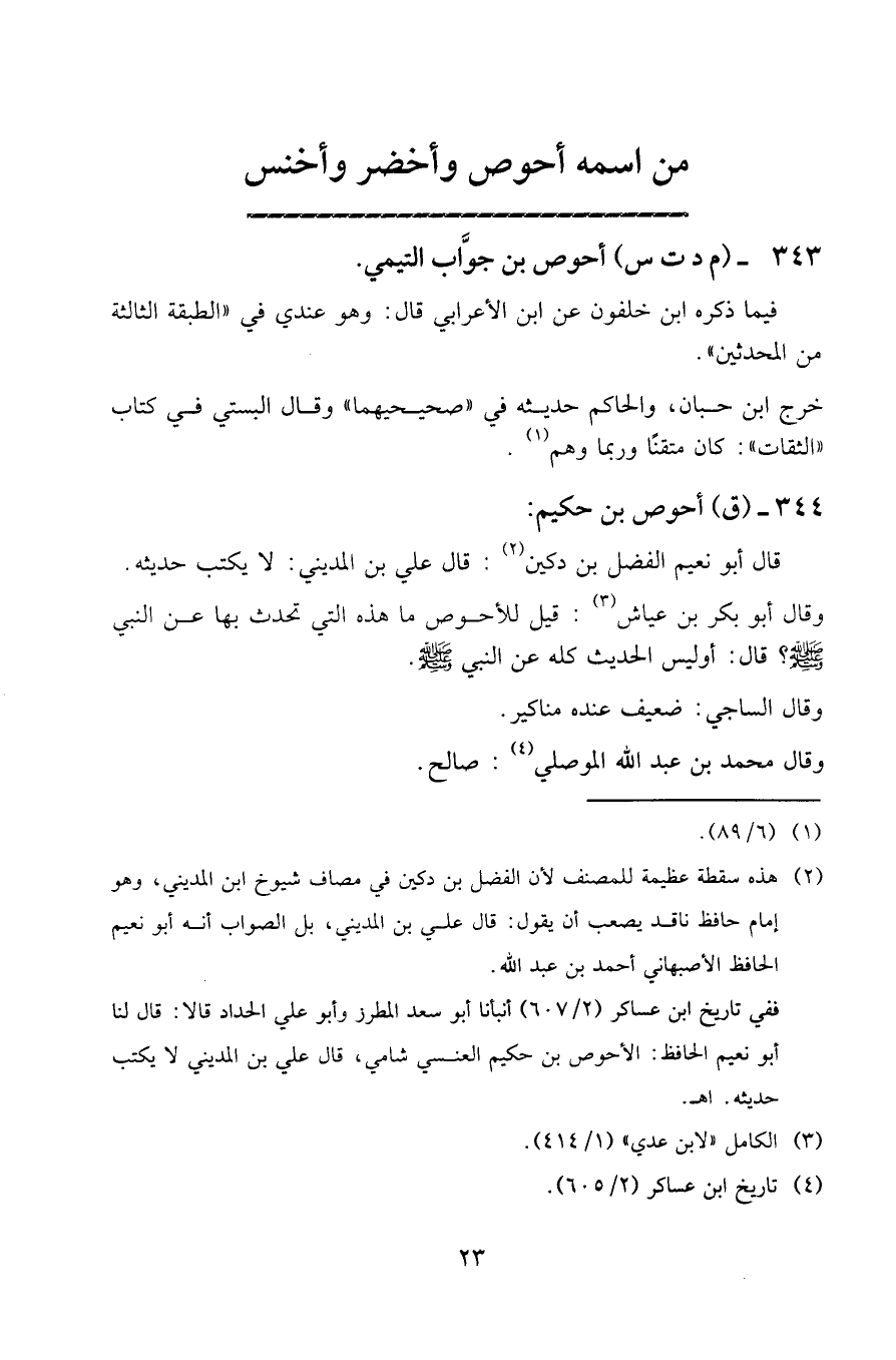 ٣٤٣ - (م د ت س) أحوص بن جوَّاب التيمي.