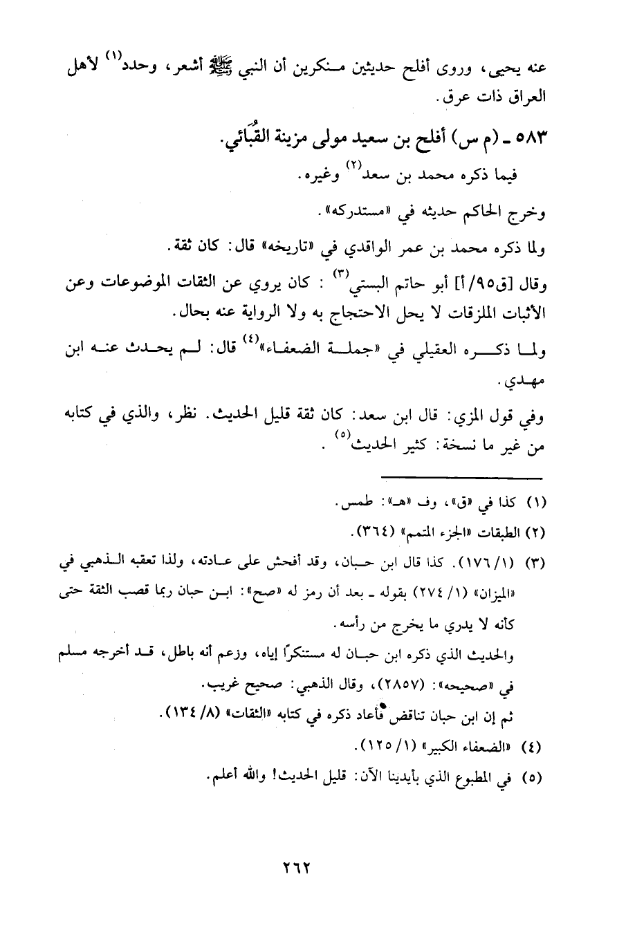 وفي قول المزي: قال ابن سعد: كان ثقة قليل الحديث. نظر، والذي في كتابه من غير ما نسخة: كثير الحديث.