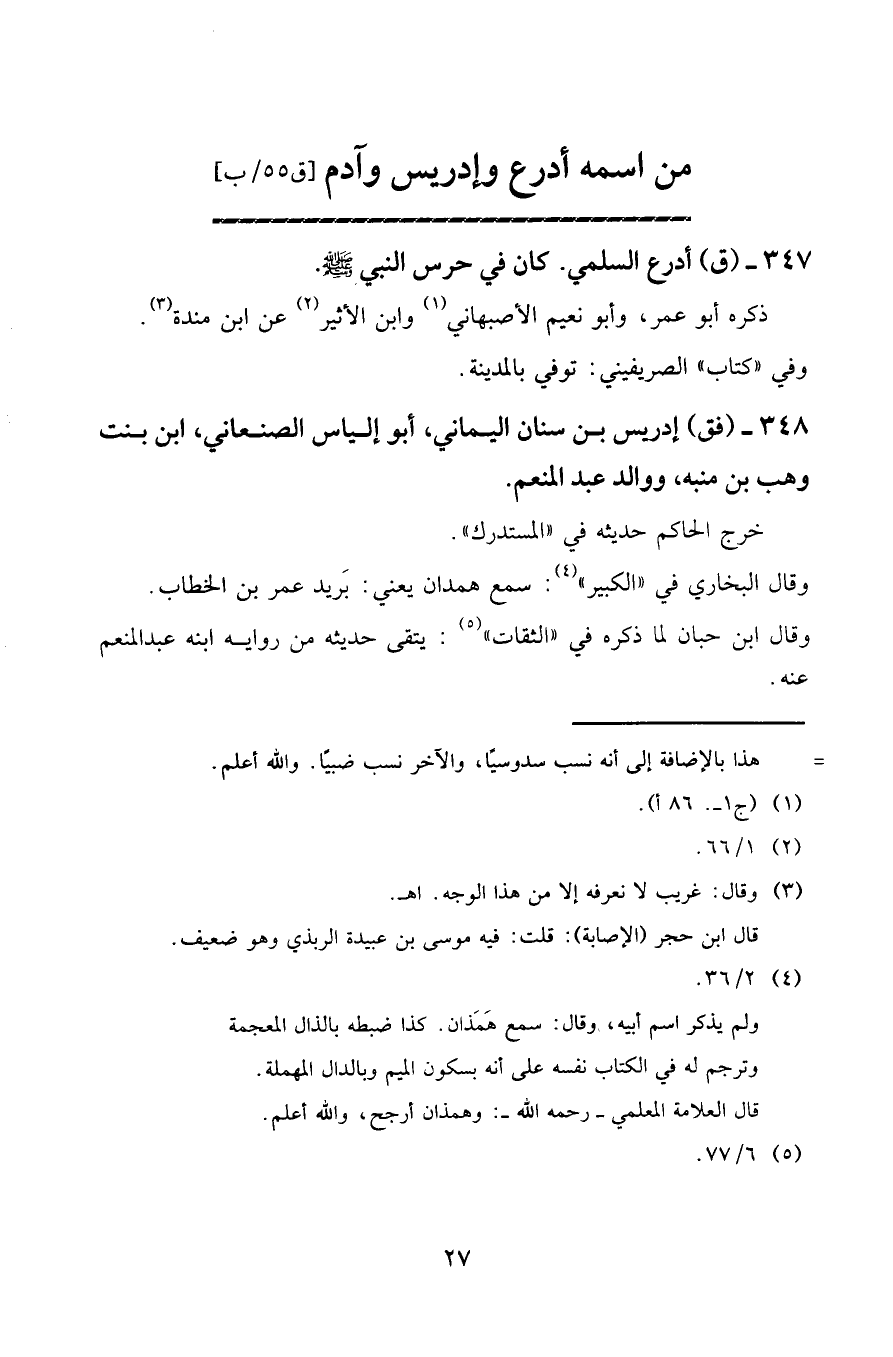 ٣٤٨ - (فق) إدريس بن سنان اليماني، أبو إلياس الصنعاني، ابن بنت وهب بن منبه، ووالد عبد المنعم.