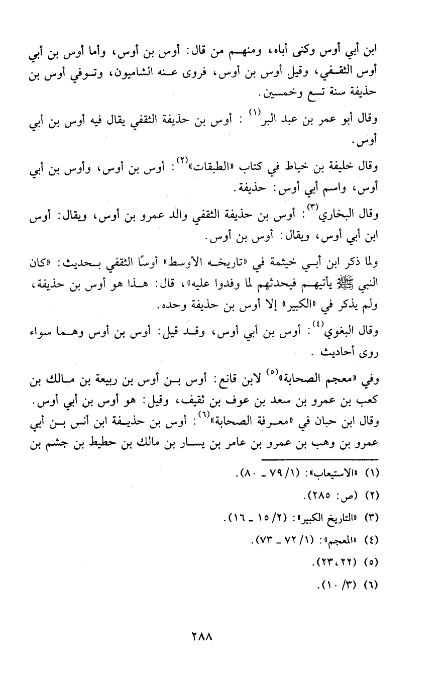 ولما ذكر ابن أبي خيثمة في «تاريخه الأوسط» أوساً الثقفي بحديث: «كان النبي صلى الله عليه وسلم يأتيهم فيحدثهم لما وفدوا عليه»، قال: هذا هو أوس بن حذيفة، ولم يذكر في «الكبير» إلا أوس بن حذيفة وحده.