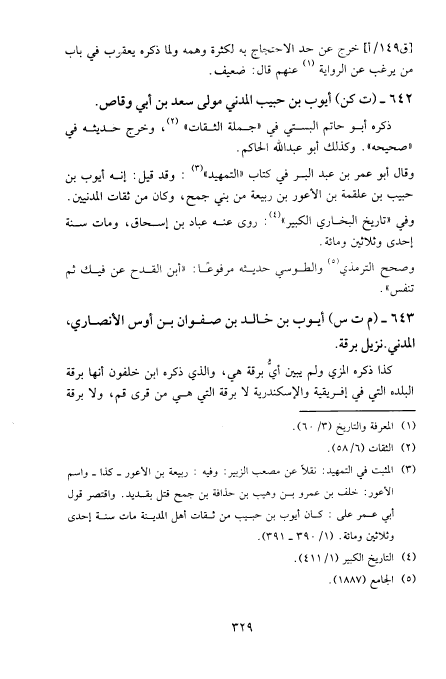 ٦٤٢ - (ت كن) أيوب بن حبيب المدني مولى سعد بن أبي وقاص.