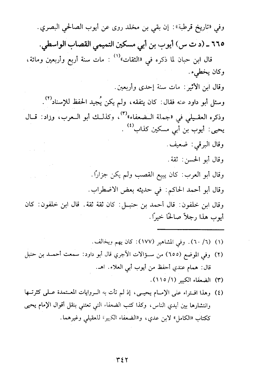 ٦٦٥ - (د ت س) أيوب بن أبي مسكين التميمي القصاب الواسطي.