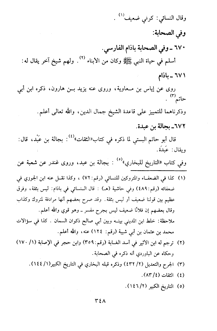 ٦٧٠ - وفي الصحابة باذام الفارسي.