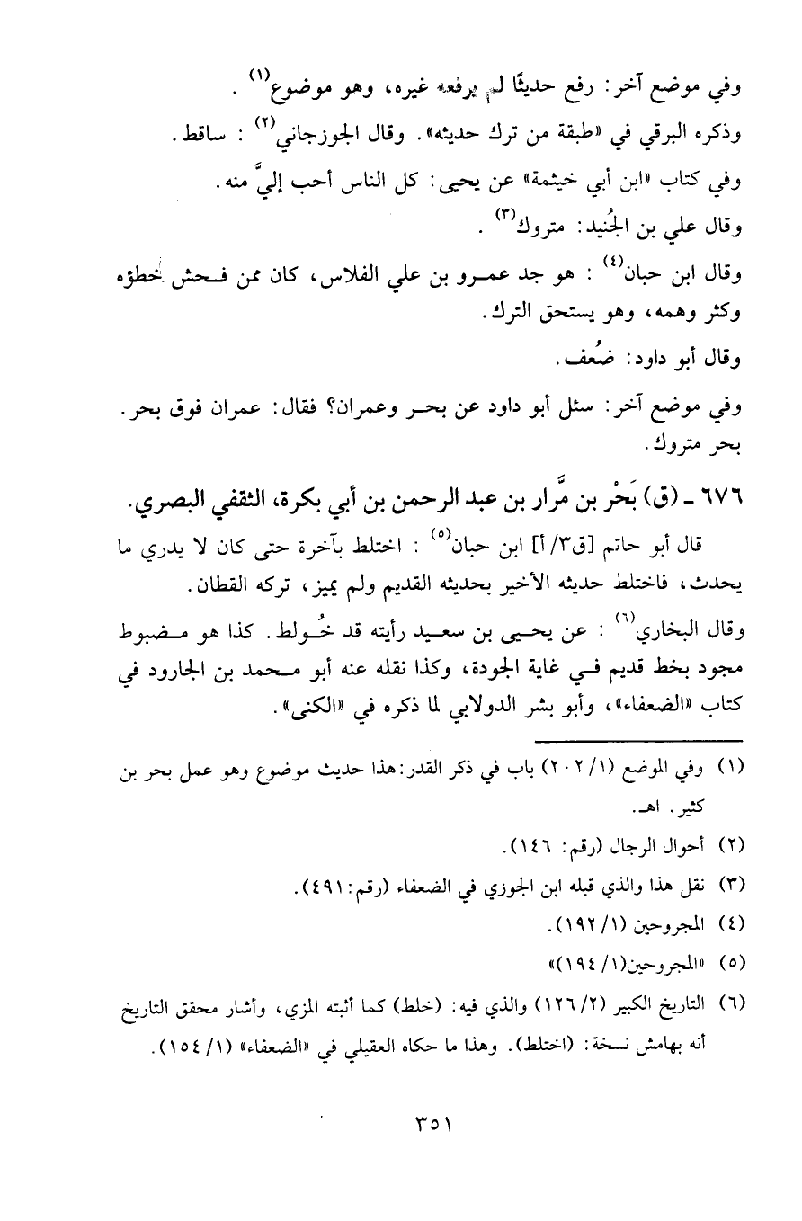 كذا هو مضبوط مجود بخط قديم في غاية الجودة، وكذا نقله عنه أبو محمد بن الجارود في كتاب «الضعفاء»، وأبو بشر الدولابي لما ذكره في «الكنى».