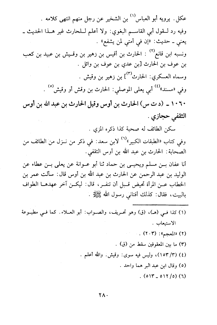 وفي كتاب «الطبقات الكبير» لابن سعد: في ذكر من نزل من الطائف من الصحابة: الحارث بن عبد الله بن أوس الثقفي.