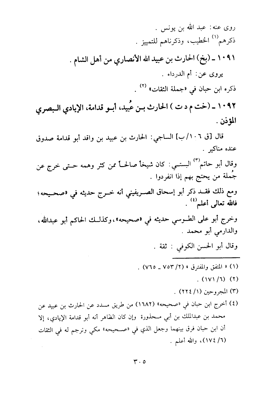 ١٠٩٢ - (خت م د ت) الحارث بن عبيد، أبو قدامة، الإيادي البصري المؤذن.