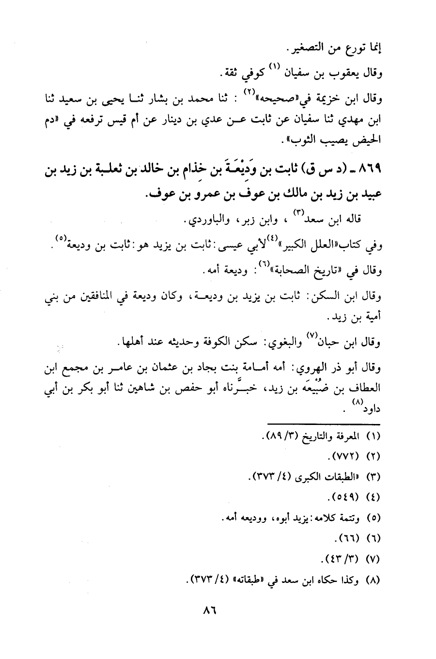 ٨٦٩ - (د س ق) ثابت بن وديعة بن خذام بن خالد بن ثعلبة بن زيد بن عبيد بن زيد بن مالك بن عوف بن عمرو بن عوف.