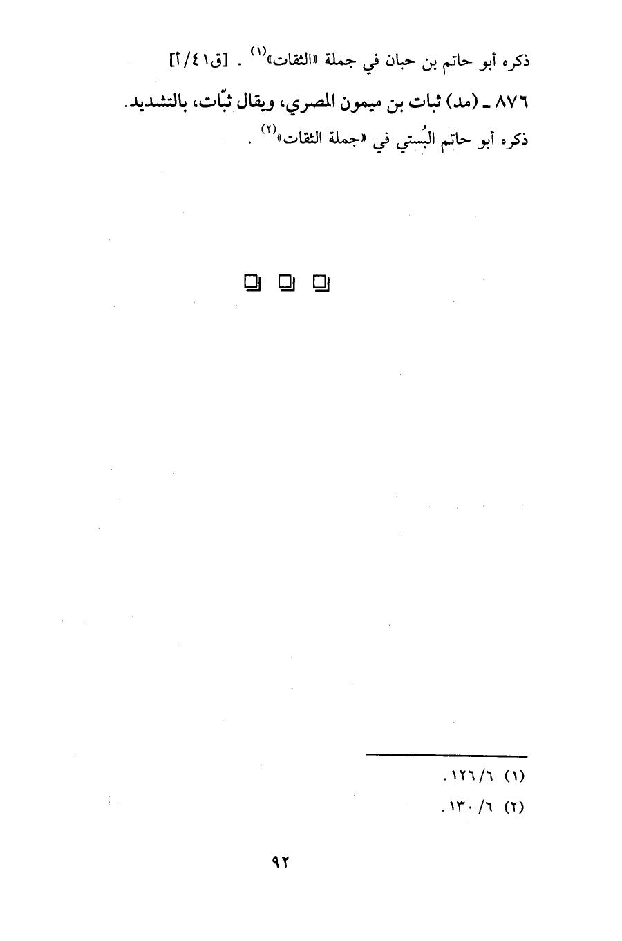 ٨٧٦ - (مد) ثبات بن ميمون المصري، ويقال ثبات، بالتشديد.