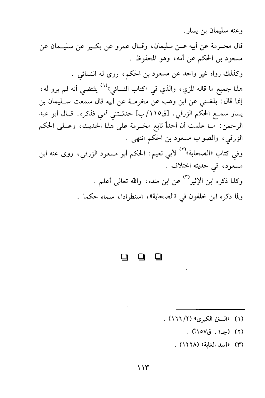 المزي، والذي في «كتاب النسائي» يقتضي أنه لم يرو له، إنما قال: بلغني عن ابن وهب عن مخرمة عن أبيه قال: سمعت سليمان بن يسار سمع الحكم الزرقي. حدثتني أمي فذكره. قال أبو عبد الرحمن: ما علمت أن أحدا تابع مخرمة على هذا الحديث، وعلى الحكم الزرقي، والصواب مسعود بن الحكم. انتهى.