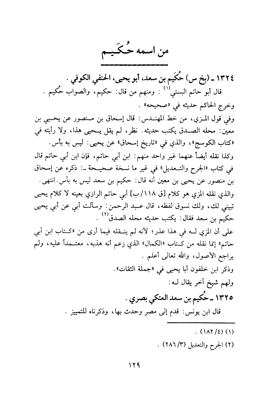 قال أبو حاتم البستي: ومنهم من قال: حكيم، والصواب حكيم.