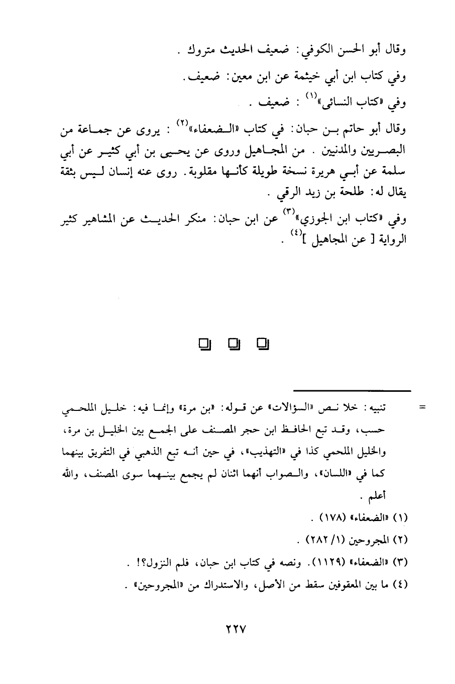 وقال أبو حاتم بن حبان: في كتاب «الضعفاء»: يروي عن جماعة من البصريين والمدنيين. من المجاهيل، وروى عن يحيى بن أبي كثير، عن أبي سلمة، عن أبي هريرة نسخة طويلة كأنها مقلوبة. روى عنه إنسان ليس بثقة يقال له: طلحة بن زيد الرقي.