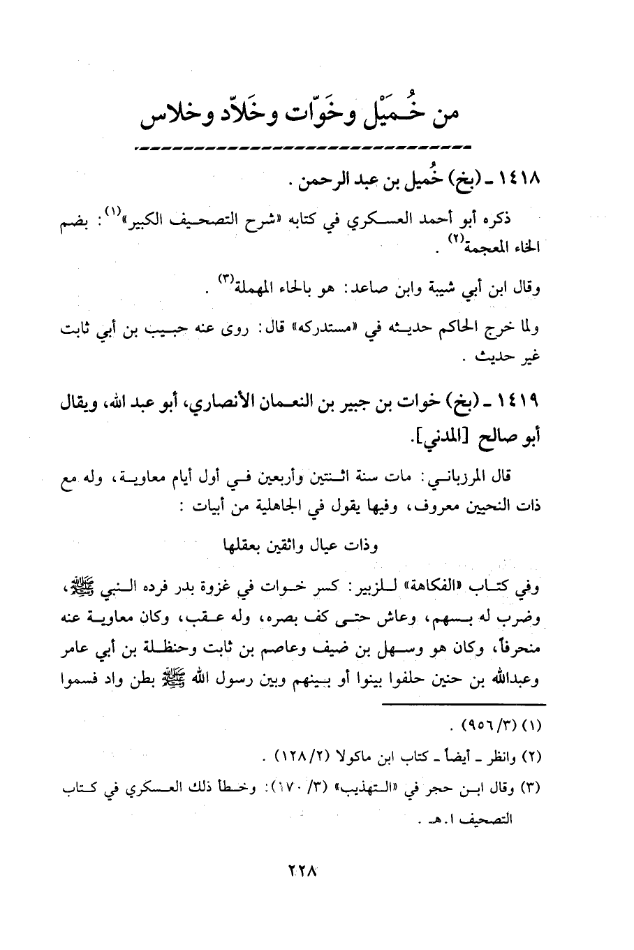 ١٤١٨ - (بخ) خميل بن عبد الرحمن.