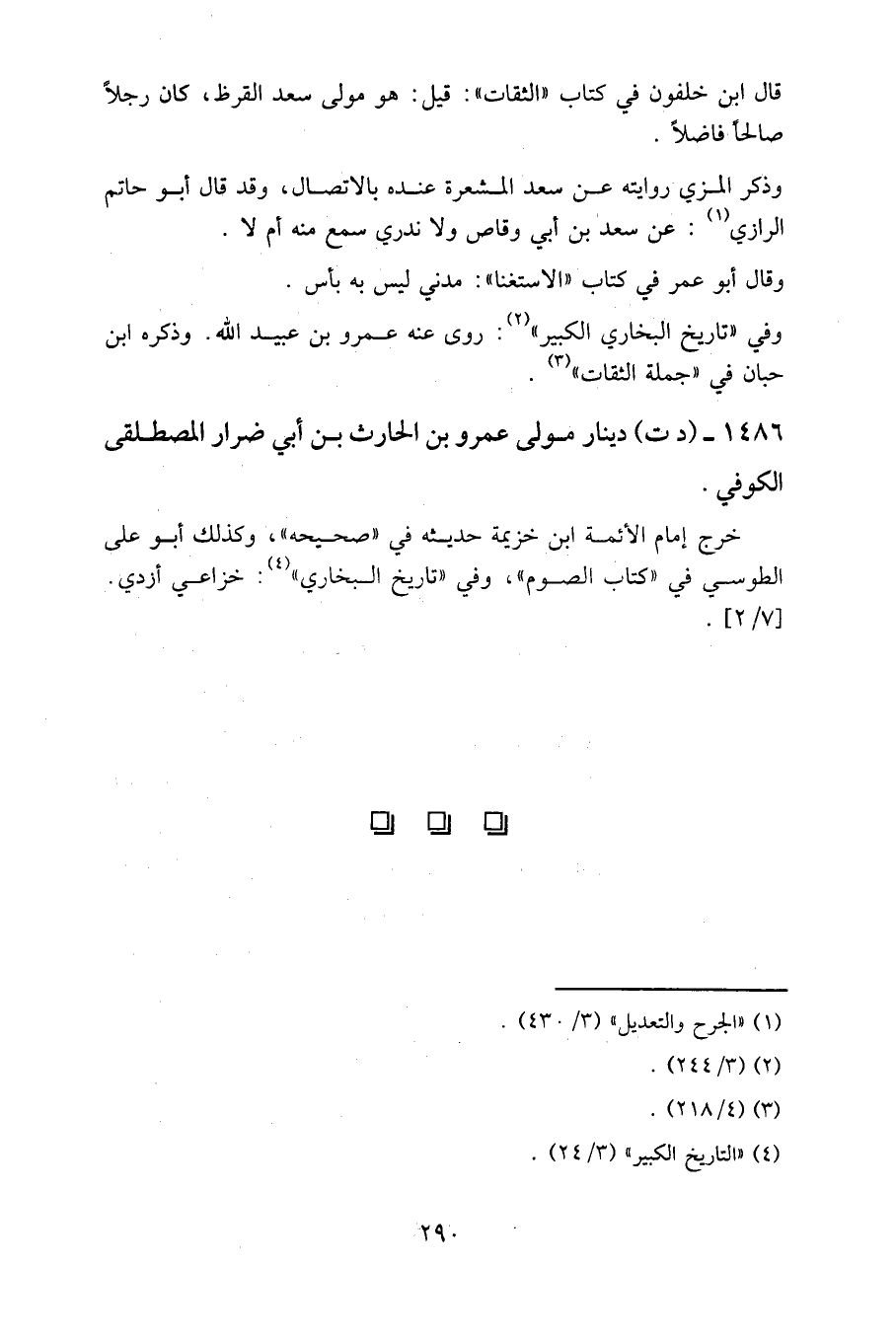 ١٤٨٦ - (د ت) دينار مولى عمرو بن الحارث بن أبي ضرار المصطلقي الكوفي.