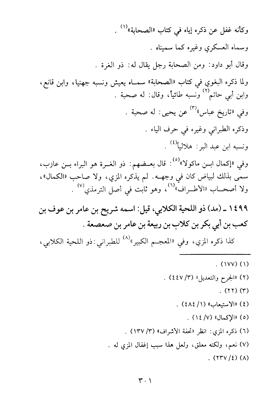 ١٤٩٩ - (مد) ذو اللحية الكلابي، قيل: اسمه شريح بن عامر بن عوف بن كعب بن أبي بكر بن كلاب بن ربيعة بن عامر بن صعصعة.