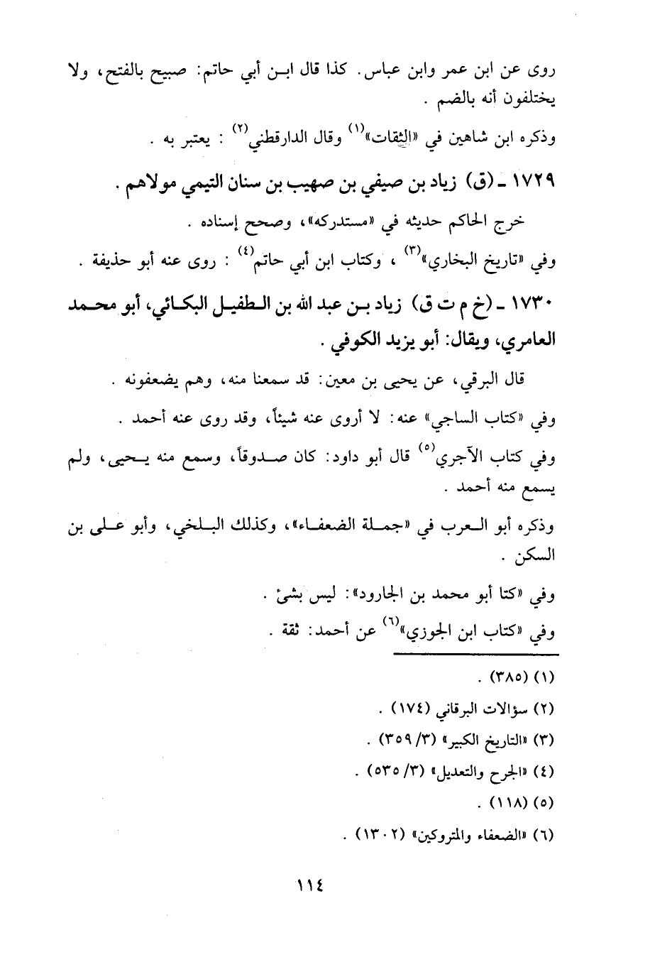 ١٧٣٠ - (خ م ت ق) زياد بن عبد الله بن الطفيل البكائي، أبو محمد العامري، ويقال: أبو يزيد الكوفي.