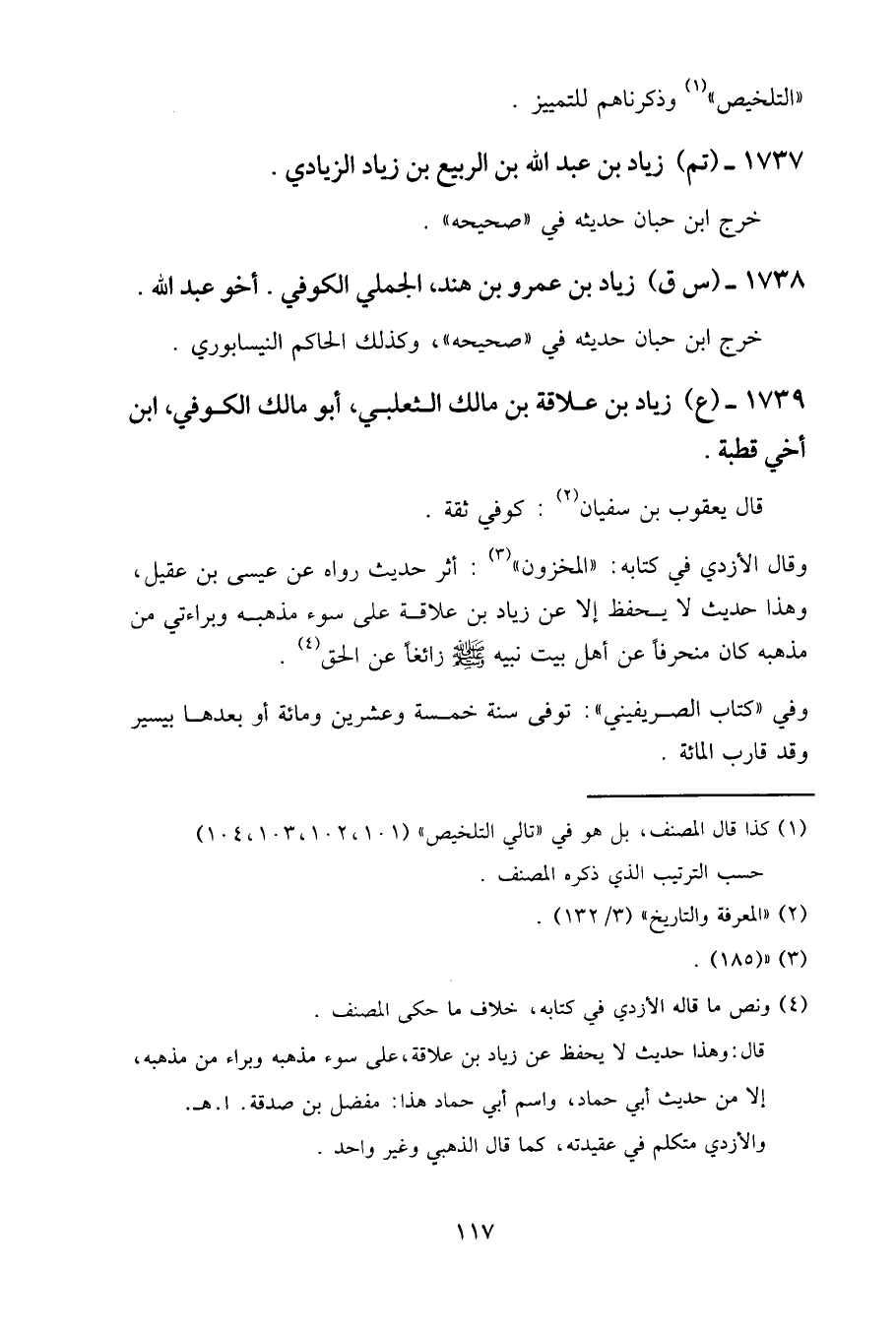 ١٧٣٩ - (ع) زياد بن علاقة بن مالك الثعلبي، أبو مالك الكوفي، ابن أخي قطبة.