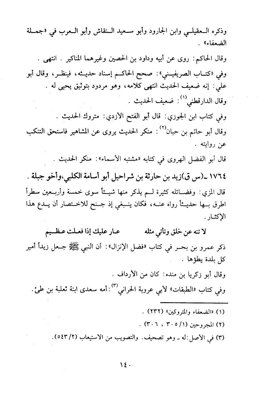 وذكره العقيلي وابن الجارود وأبو سعيد النقاش وأبو العرب في «جملة الضعفاء».