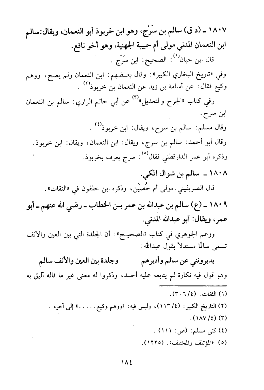 ١٨٠٩ - (ع) سالم بن عبد الله بن عمر بن الخطاب- رضي الله عنهم- أبو عمر، ويقال: أبو عبد الله المدني.