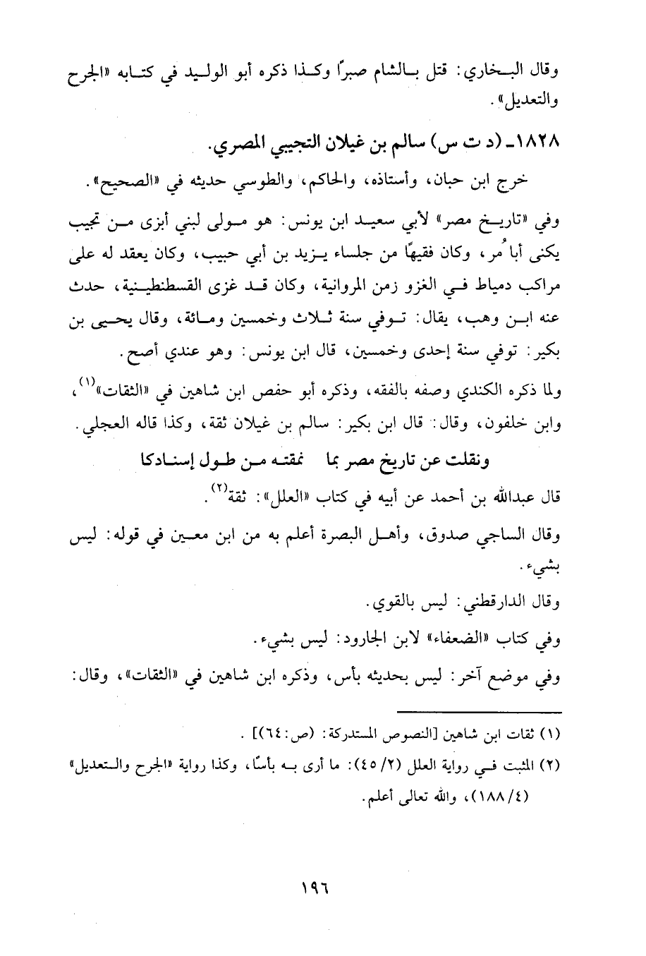 ١٨٢٨ - (د ت س) سالم بن غيلان التجيبي المصري.
