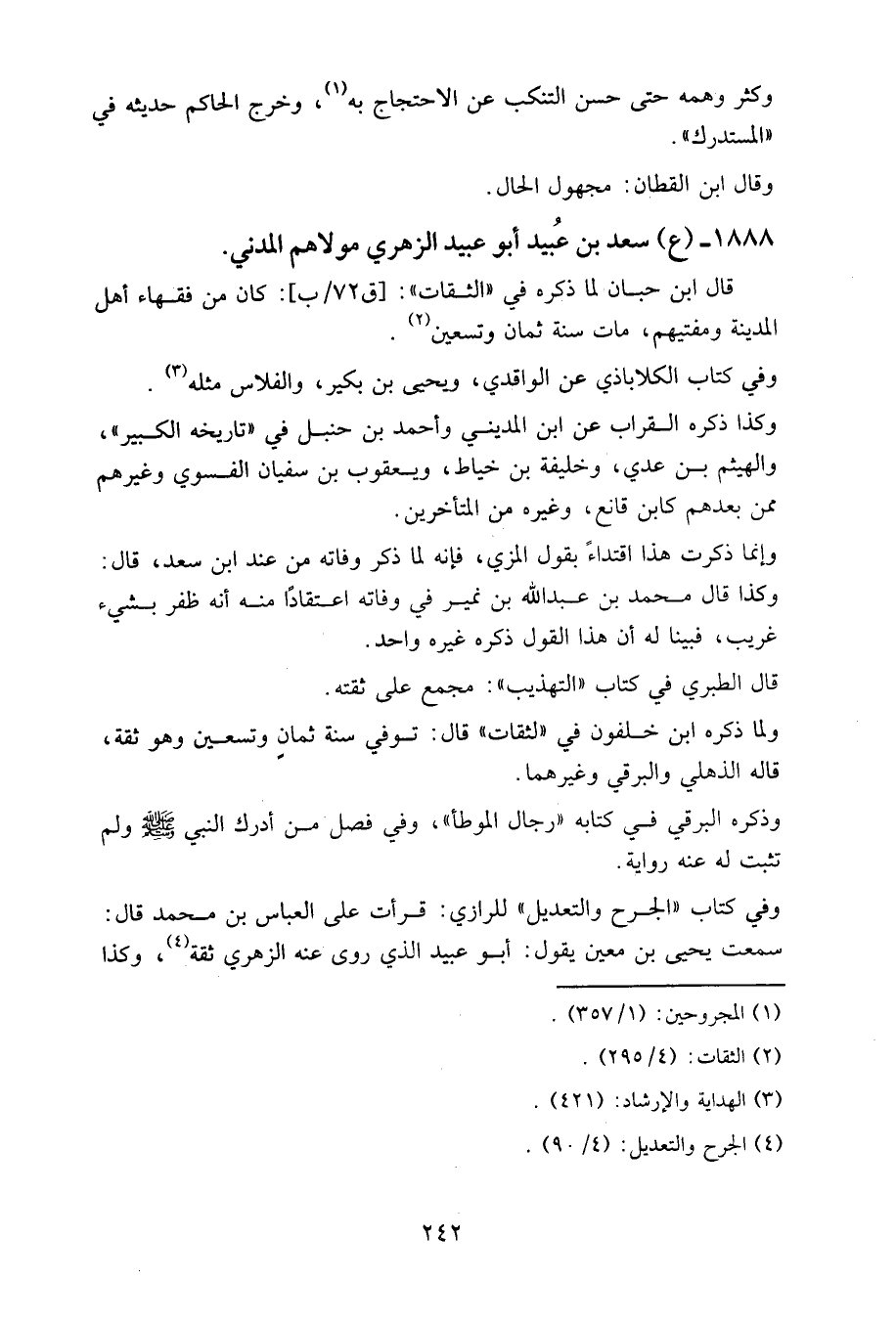 ١٨٨٨ - (ع) سعد بن عبيد أبو عبيد الزهري مولاهم المدني.