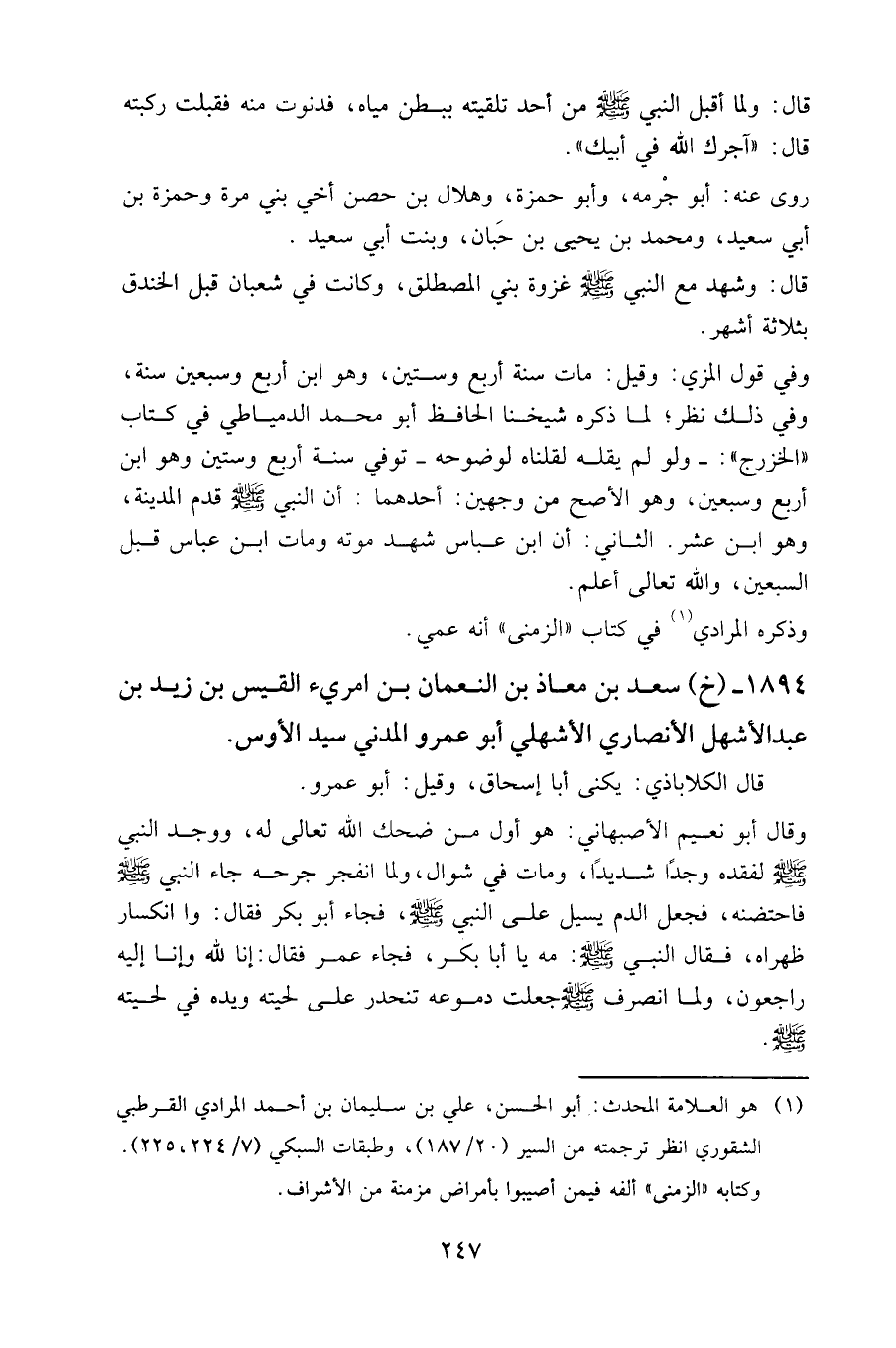 ١٨٩٤ - (خ) سعد بن معاذ بن النعمان بن امرئ القيس بن زيد بن عبد الأشهل الأنصاري الأشهلي أبو عمرو المدني سيد الأوس.