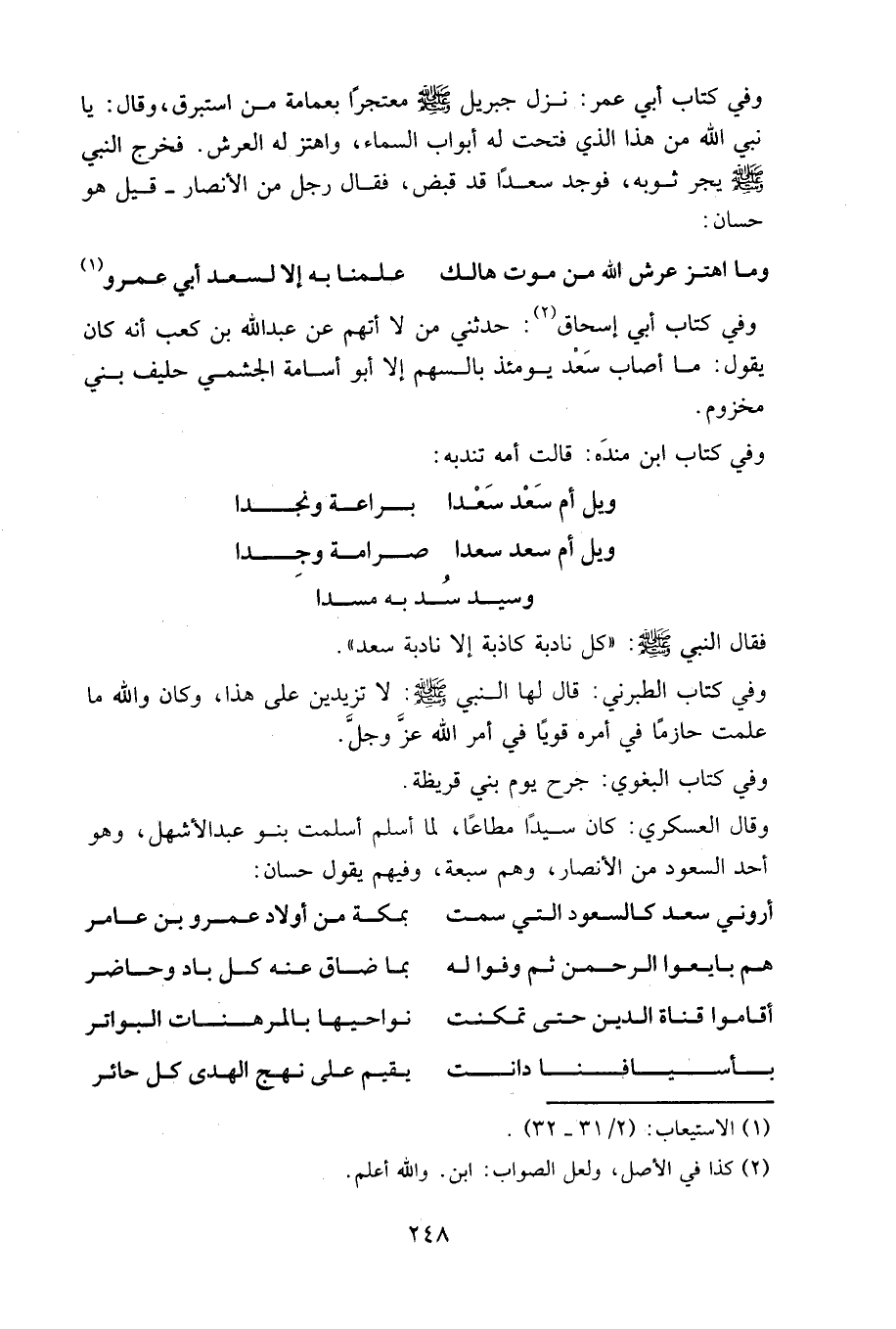 وما اهتز عرش الله من موت هالك ... علمنا به إلا لسعد أبي عمرو