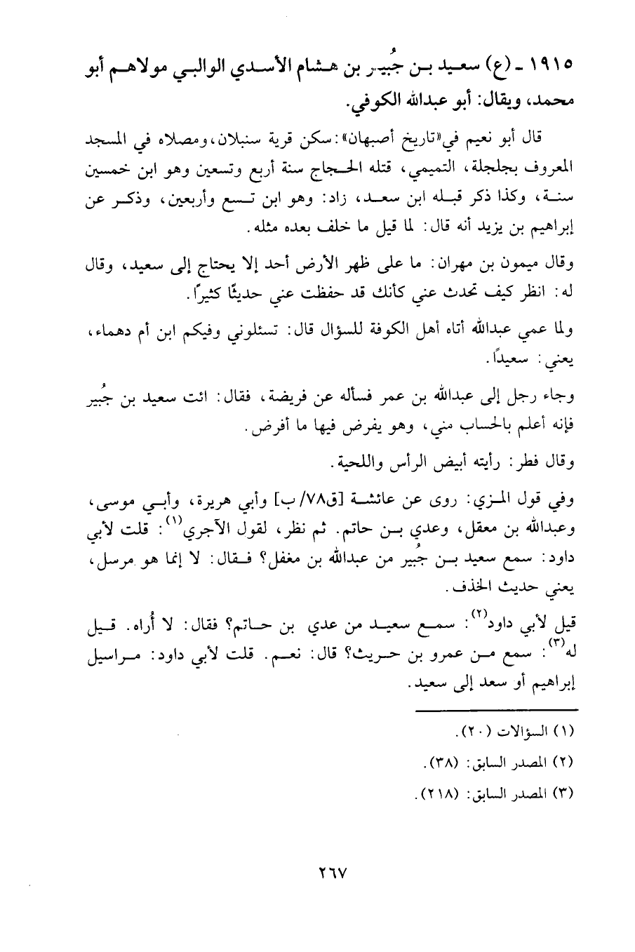 ١٩١٥ - (ع) سعيد بن جبير بن هشام الأسدي الوالبي مولاهم أبو محمد، ويقال: أبو عبد الله الكوفي.