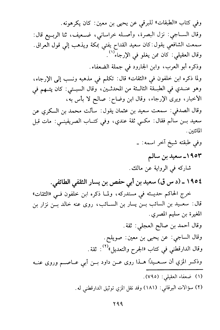 ١٩٥٤ - (د س ق) سعيد بن أبي حفص بن يسار الثقفي الطائفي.