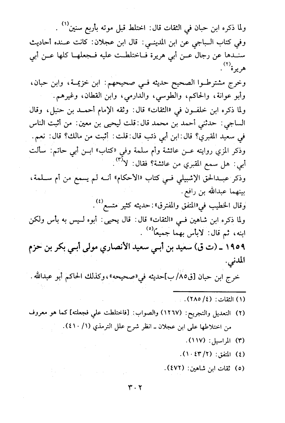 وفي كتاب الباجي عن ابن المديني: قال ابن عجلان: كانت عنده أحاديث سندها عن رجال عن أبي هريرة فاختلطت عليه فجعلها كلها عن أبي هريرة.