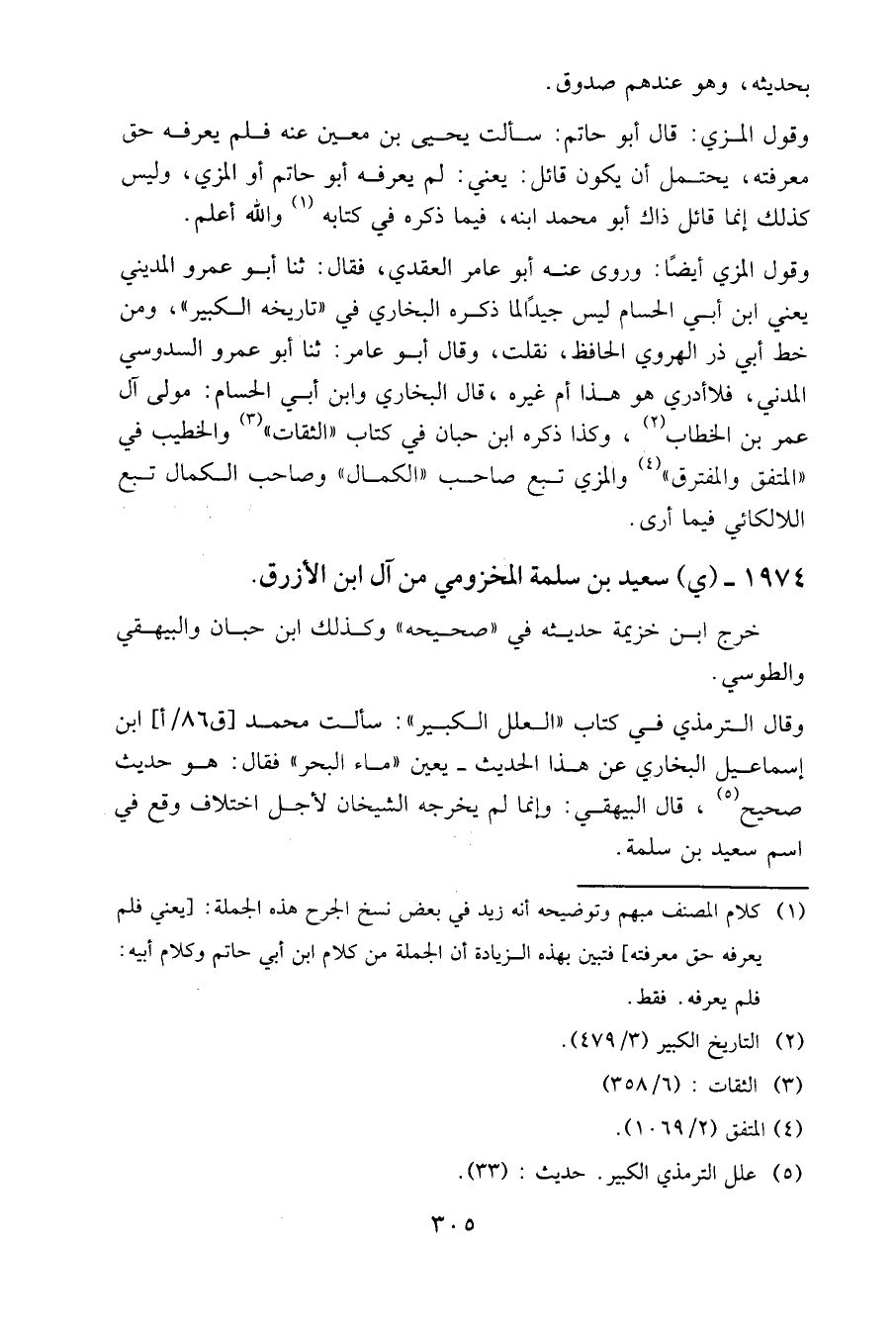 ١٩٧٤ - (ي) سعيد بن سلمة المخزومي من آل ابن الأزرق.