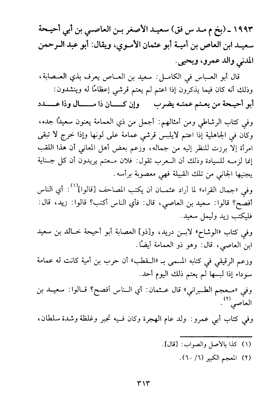 وفي «معجم الطبراني» قال عثمان: أي الناس أفصح؟ قالوا: سعيد بن العاصي.